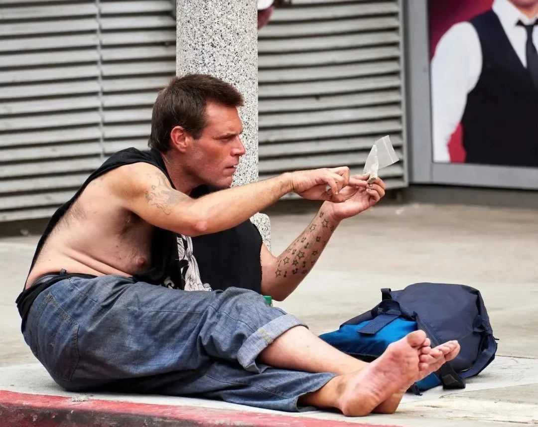 有位美国视频博主记录了这样的镜头:在臭名昭著的“毒品街”费城肯辛顿大街上,有流浪汉露宿街头、衣不蔽体,有吸毒者神志不清、姿态怪异。放眼望去,满街都是吸毒者的粪便尿液、针头垃圾。