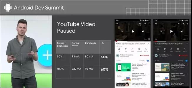 暗黑模式确实省电 来源:2018年安卓开发者大会