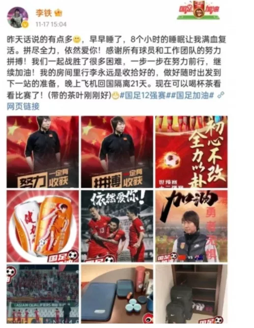 而真正让坊间震惊的,是李铁于赛后发布在个人社交媒体的一系列信息。