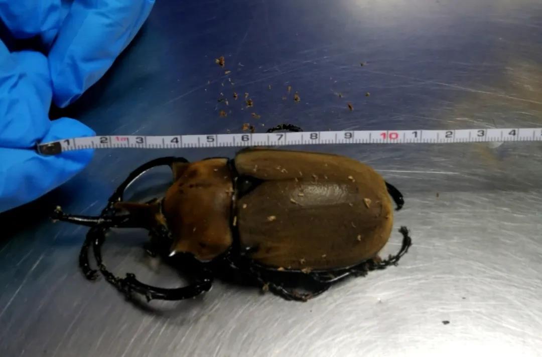 据悉,海关关员在对一票申报品名为“模型”的进境邮件进行过机查验时,智能审图系统提示发现异常。经人工开箱查验,发现箱内有10个装有昆虫及土壤的透明塑料盒,其中2个方形塑料盒内有体型较大的褐色昆虫活体2只,体长达10厘米,3个圆形塑料盒内有昆虫活体共6只,5个圆形塑料管内有黑色昆虫活体共5只。后经专业鉴定,这些昆虫分别为毛象硕犀金龟成虫雌雄活体各1只,毛象硕犀金龟幼虫活体6只,欧式锹甲成虫活体5只。