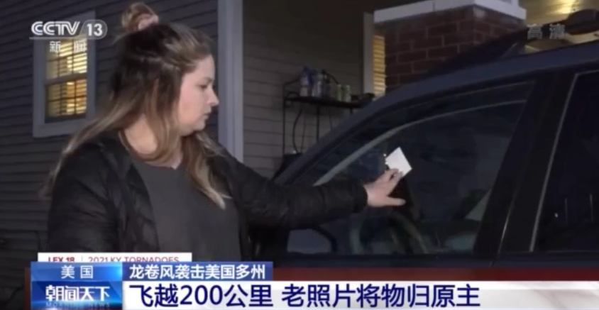 11日,美国印第安纳州新奥尔巴尼市居民凯蒂·波斯滕,在自己的车窗上发现了一张纸片,起初她以为是有人留下的便条,走近后才发现是一张照片。这张黑白照片中,一名妇女抱着一个孩子,照片背面写着两个人的姓名以及拍摄时间。凯蒂·波斯滕说,当时她也在关注龙卷风灾害的信息,并认为这张照片可能是来自肯塔基州灾区。因此她把照片发在社交媒体上,希望能找到照片的主人。