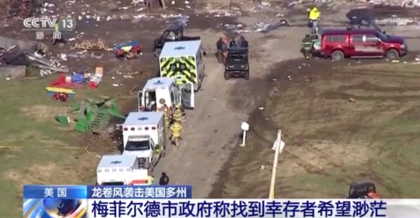 12日,救援人员继续在重灾区肯塔基州梅菲尔德市的废墟中搜救幸存者。梅菲尔德的消防人员当天表示,在被龙卷风摧毁的蜡烛厂的搜救行动面临着极大困难。在蜡烛厂的废墟中,有成吨扭曲和破损的金属,更为棘手的是化学物品。据了解,从当地时间11日凌晨开始,救援人员就没有从蜡烛厂废墟中发现任何幸存者。当地政府表示,找到幸存者的希望已经十分渺茫。