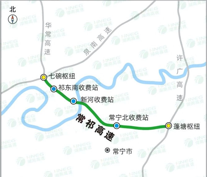 华常高速连接岳阳市(华容)、益阳市、长沙市、湘潭市、娄底市、衡阳市(常宁)区域,其中常祁段起于常宁蓬塘,终于祁东归阳镇,主线全长32.123公里,设计时速100公里。华常高速全线通车,将加强岳阳、益阳、长沙、湘潭、娄底、衡阳地区经济联系,加大湖南对接粤港澳大湾区的力度,对打造鄂湘粤省际新通道,分流京港澳、许广、二广高速交通流量,具有重要意义。