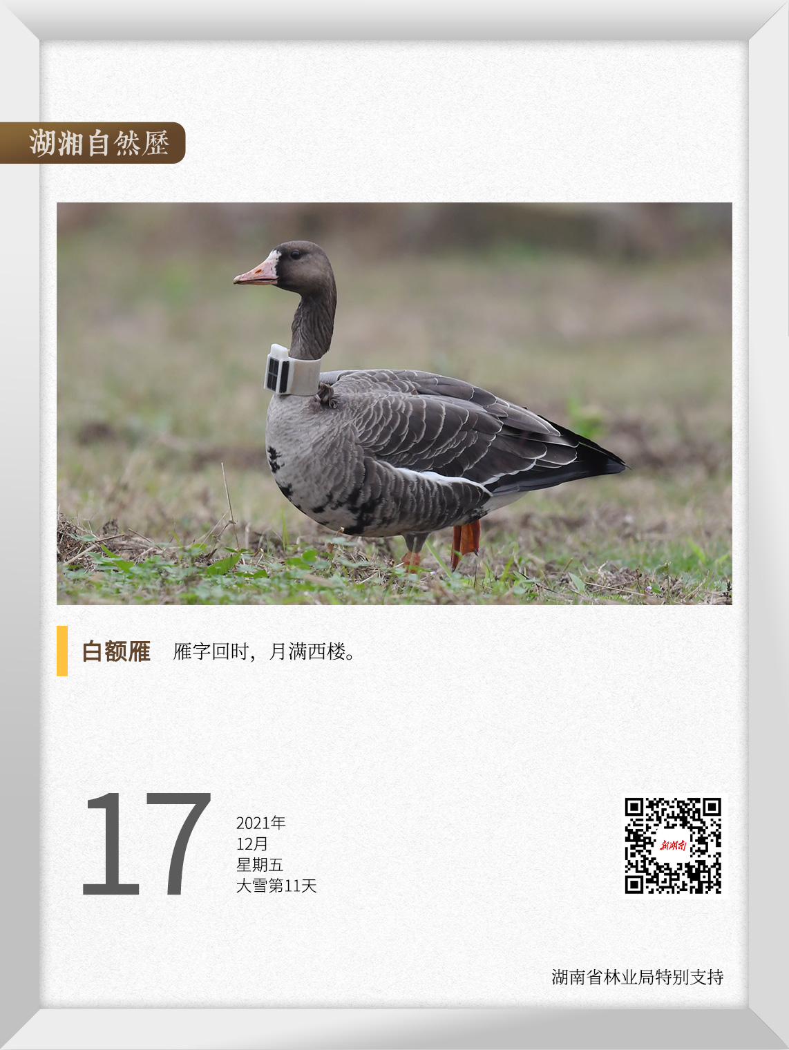 在飞抵洞庭湖之前,白额雁经过了一场超远程飞行。它们将繁殖地定在北极苔原带,赶在那片神秘大地为期不长的“温柔”时间生儿育女。秋风一起,举家南迁,日夜兼程飞向另一处家园。湖南湖泽众多,水草丰美,正适合劳累半年的白额雁休养生息。