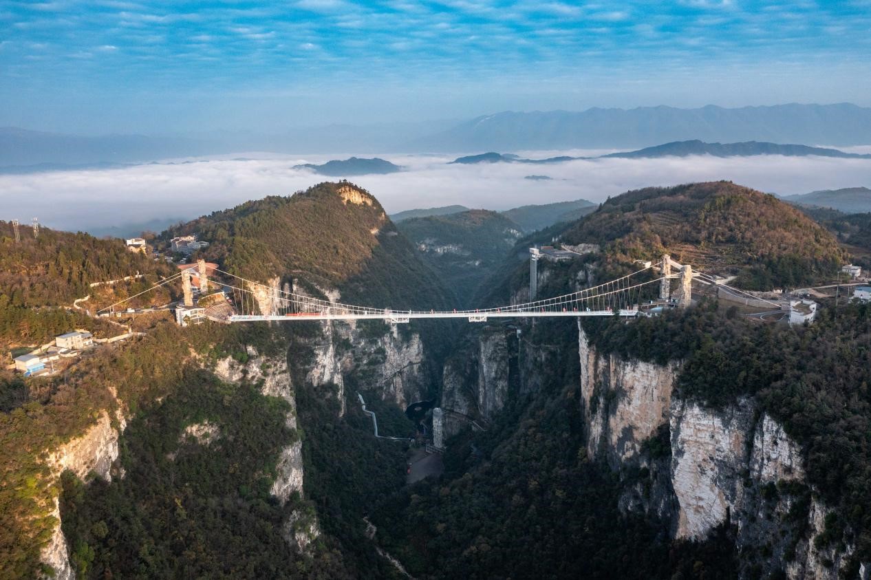 张家界大峡谷景区集峻峰幽谷、山岩奇洞、涧泉湖泊于一体,自然风光得天独厚,人文气息丰富浓厚,被誉为“张家界地貌博物馆”,横跨整个大峡谷的玻璃桥更是举世瞩目。景区内绝壁高耸,飞瀑流泉,是进行攀岩、登高等各项极限运动挑战的绝佳场地。