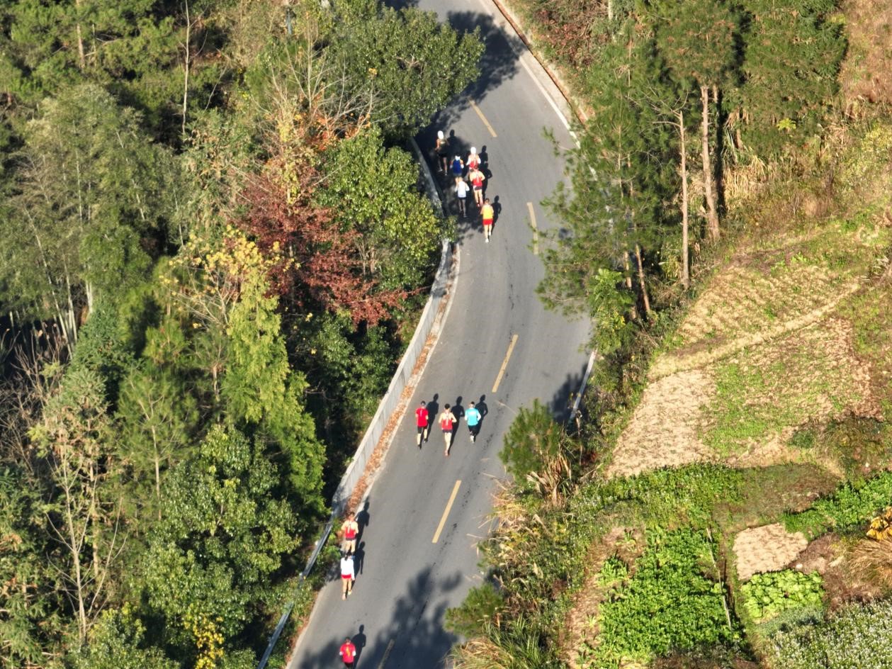 上午9点,伴随着振奋人心的汽笛声,选手们从蚩尤屋场出发,途经月牙泉、春姬峡等多个景点,一路上,有盘山公路、林间小道、登山步道、石板台阶、窄桥……是一条美景与挑战并存的赛道。