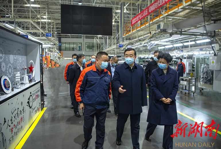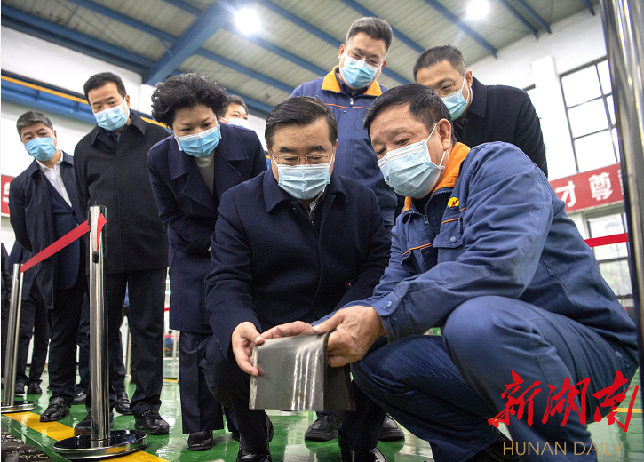 来到华菱湘潭钢铁集团有限公司,张庆伟详细了解企业生产经营和党史学习教育等情况,要求深化国资国企改革,注重绿色发展,推动钢铁产业由大变强。在与“七一勋章”获得者艾爱国同志亲切交流时,张庆伟指出,要弘扬工匠精神,教育引导广大职工向艾爱国同志学习,争做新时代的奋斗者。各级各有关部门要关心关爱劳模,营造尊重劳模、爱护劳模的良好氛围。张庆伟随后来到湘电集团动力厂区,鼓励企业强化创新驱动,不断提高产品质量和发展效益,要求湘潭市和有关部门深入开展纾困增效专项行动,更好支持企业发展。在湘潭经开区湖南吉利汽车部件有限公司,张庆伟深入了解新能源生产线改造等情况,要求企业加强党建工作,安排好明年一季度生产,培育壮大人才队伍,为现代化新湖南建设作出更大贡献。