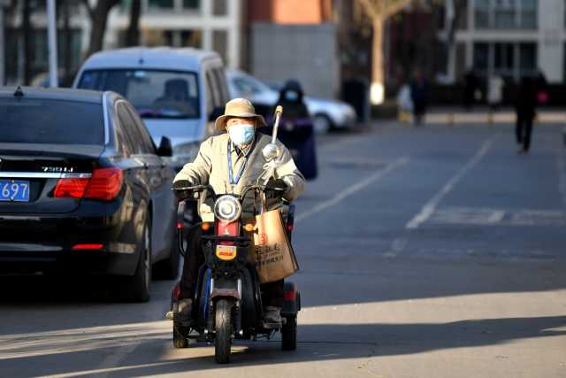 夕阳下,常壮其骑着代步车驶向家门口银行。右眼失明的他,用善举为无数学子照亮未来。