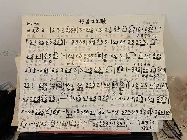 完成转账捐赠,宁夏红十字会工作人员送常壮其回家,并向他颁发捐赠证书。接过证书后,常壮其把证书与自己谱曲填词的歌曲《好医生之歌》的乐谱放在一起。