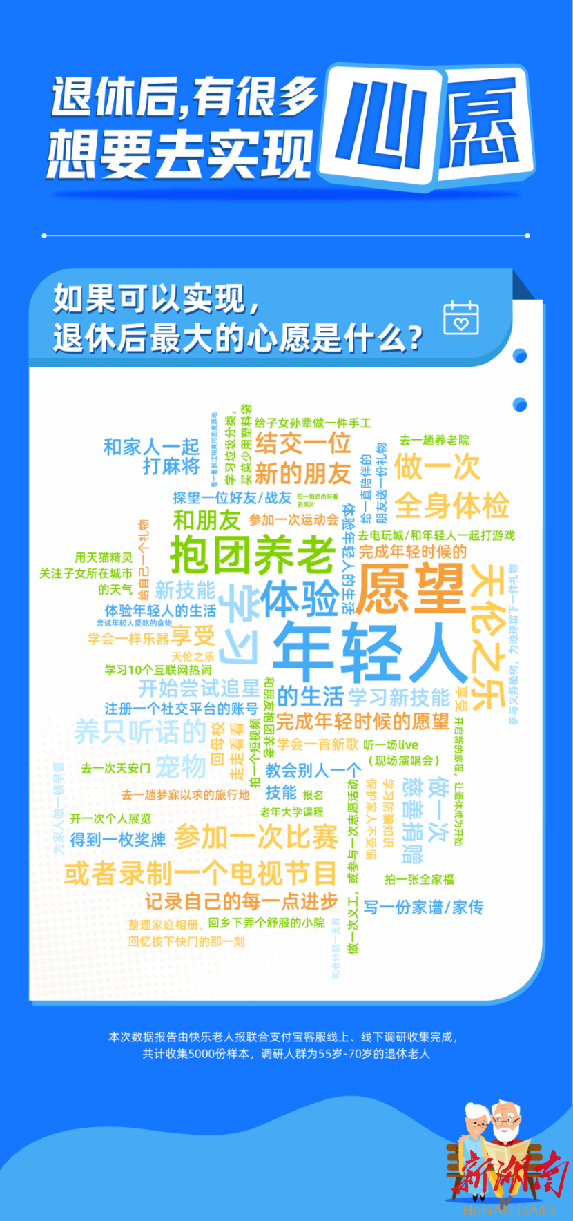 线上,老年人拥抱数字生活,而线下,这届退休老人也越活越年轻,更愿意和年轻人为伍。数据显示,4成老人想要尝试年轻人爱吃的食物,和年轻人一起打游戏,做一回老顽童。他们逐渐将时间和精力从家人扩大到自己身上,实现从前没有完成的心愿。但不管时代如何变化,看一次天安门,感受红旗随风飘扬的震撼风景,仍是9成老人的旅行必选清单。