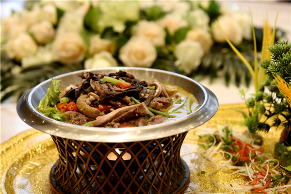 永州市蓝山县地处楚尾粤头,2013年被国家水利部门认定为湘江源头。好山好水养好牛,蓝山县出产的牛肉质地优异、遐迩闻名。蓝山金牌牛杂更是当地群众宴请亲朋好友的一道必备美食,选用新鲜的牛杂食材烹饪,主要特点是牛肉嫩滑、牛肚脆爽、鲜香可口、原汁原味。