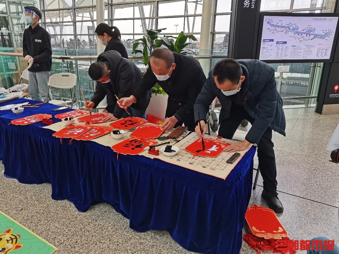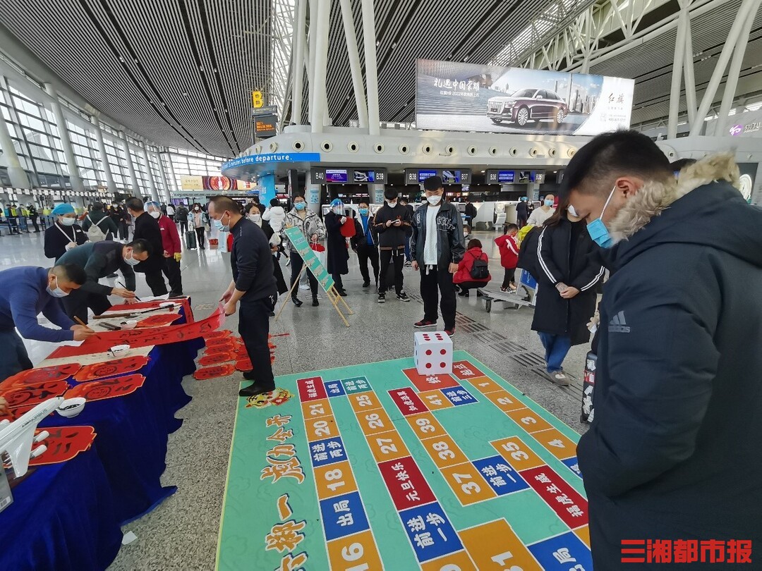 活动现场,旅客或体验书写对联的乐趣,或参与趣味小游戏,还可以通过“湖南机场航享e+”微信公众号参与随手“拍一拍”视频征集活动,赢取新年大礼。