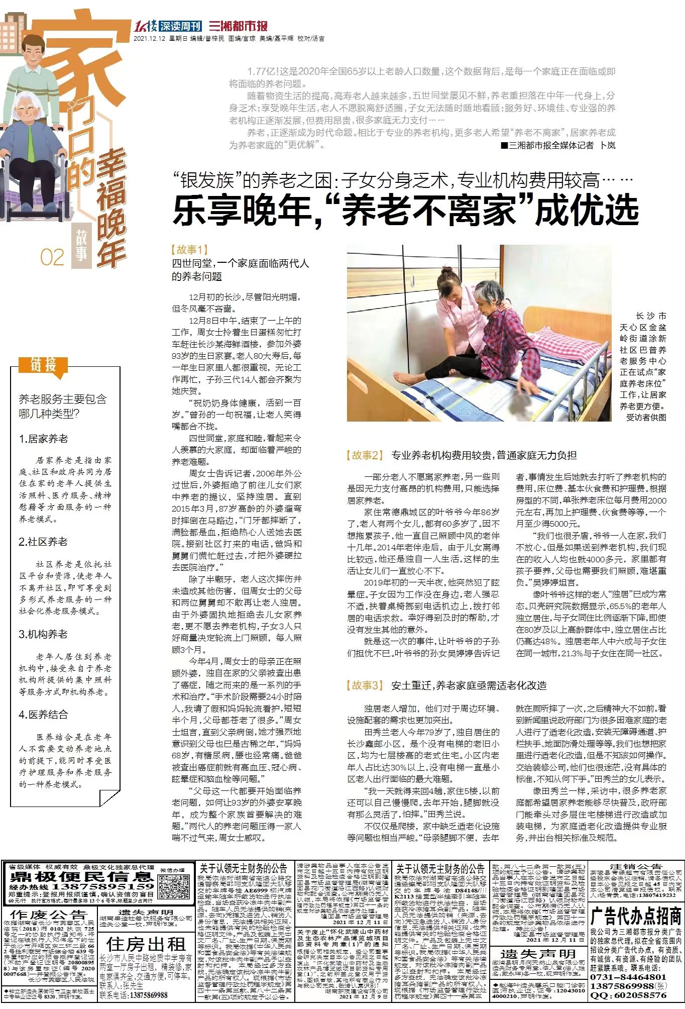 随着生活水平的提高,高寿老人越来越多,五世同堂屡见不鲜,养老重担落在中年一代身上,分身乏术;享受晚年生活,老人不愿脱离舒适圈,子女无法随时随地看顾;服务好、环境佳、专业强的养老机构正逐渐发展,但费用昂贵,很多家庭无力支付……