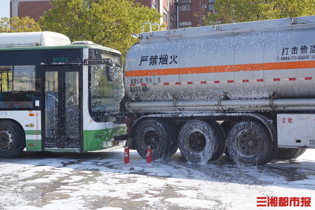三湘都市报·新湖南客户端12月2日讯(全媒体记者 虢灿 视频 王珏)公交车追尾油罐车,起火冒浓烟了,公交车还满载乘客!今天上午,这样“危急”的一幕发生在湖南农业大学修业广场,这是一场交通事故应急处置演练,多部门在最短的时间紧急处置,而现场的大学生、外卖小哥等人,沉浸式体验一场突发事故的处置全过程。今天是第十个“全国交通安全日”,我省多部门联合主办湖南省2021年122“全国交通安全日”现场主题活动,同时,湖南省2021年交通安全宣传月正式启动。