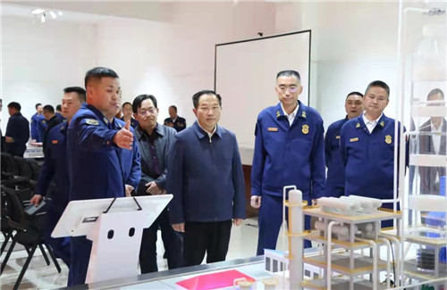 李大剑一行走进支队训练场、石油化工教学室、执勤大楼建设工地,现场查看训练、教学情况以及执勤大楼建设进展,并深入支队食堂、宿舍,详细了解队员伙食和后勤保障等工作。