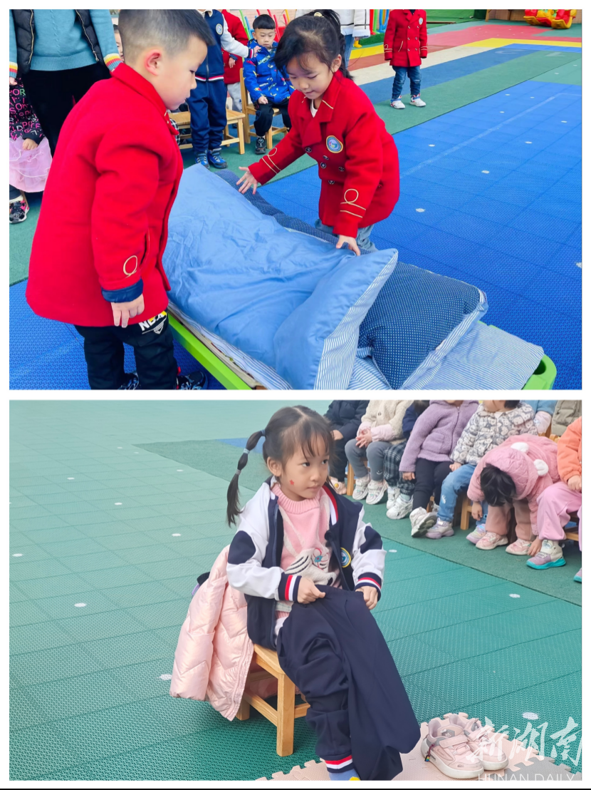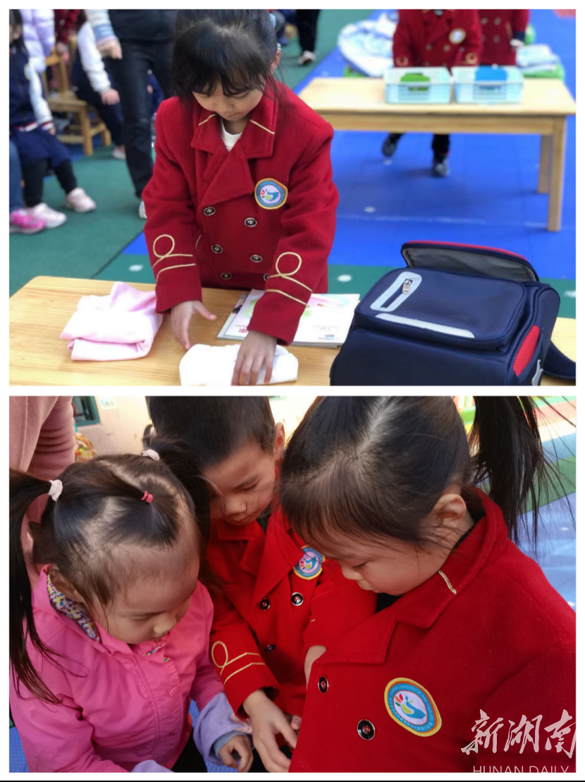 新湖南客户端12月24日讯 (通讯员 段喜群)进一步提高幼儿生活自理能力,加强幼儿自我服务意识,雨花区教育局幼儿园博长幼儿园于近日开展了“生活自理,快乐自立”的比赛活动。活动结合幼儿年龄特点,分别制定了大、中、小班比赛内容,如大班垃圾分类、叠被子;中班扣纽扣、叠衣服;小班穿鞋子、背书包等。
