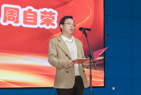 周自荣在报告会上讲话。他勉励同学们学习劳模工匠们脚踏实地、敏于思考、勤于钻研的职业精神,一步一个脚印,一年一个台阶,创造出彩的人生。
