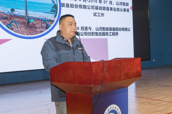 学院优秀校友、山河智能装备股份有限公司国际部售后服务工程师、长沙市2021年度“十行状元”李桂文分享了自己毕业后在山河智能成长成才的故事,勉励大家明确自己的目标,踏踏实实学习,对待工作保持专注、忍耐和热爱。