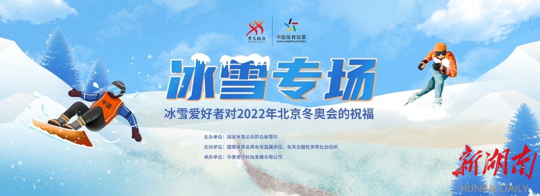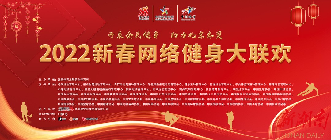 新湖南客户端12月31日讯(记者 胡旻)今日,记者从省体育局获悉,由国家体育总局群众体育司主办,国家体育总局各直属单位、各国家级体育协会(社团组织)支持,华奥星空承办的2022年“新春网络健身大联欢”活动正式上线,活动报名通道将于2022年1月1日零时正式开通,邀请广大市民在春节和北京冬奥会期间积极参与全民健身,共同助力北京冬奥会。