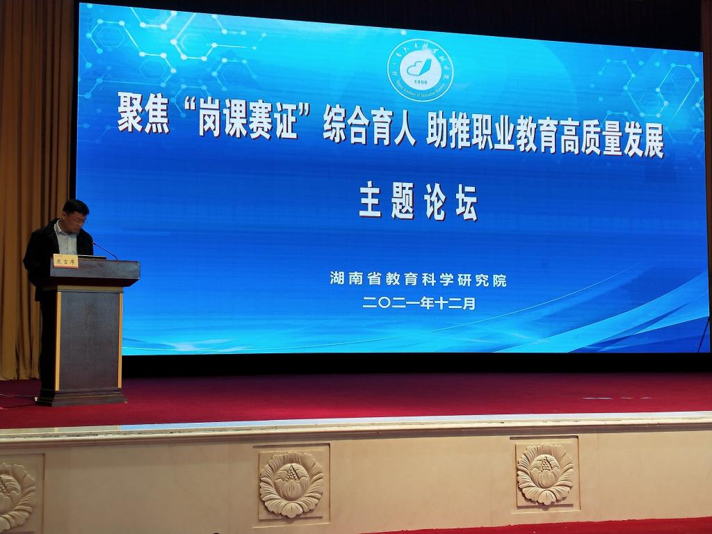 12月3日-4日,湖南省教育科学研究院在长沙举办“岗课赛证综合育人 助推职业教育高质量发展”主题论坛,各市州教育局分管职业教育领导、市州教育科学研究院负责人、职业院校管理与教学人员近400人参加论坛现场活动。长沙民政职院院长李斌受邀作《“岗课赛证”综合育人模式探索与实践》专题报告。