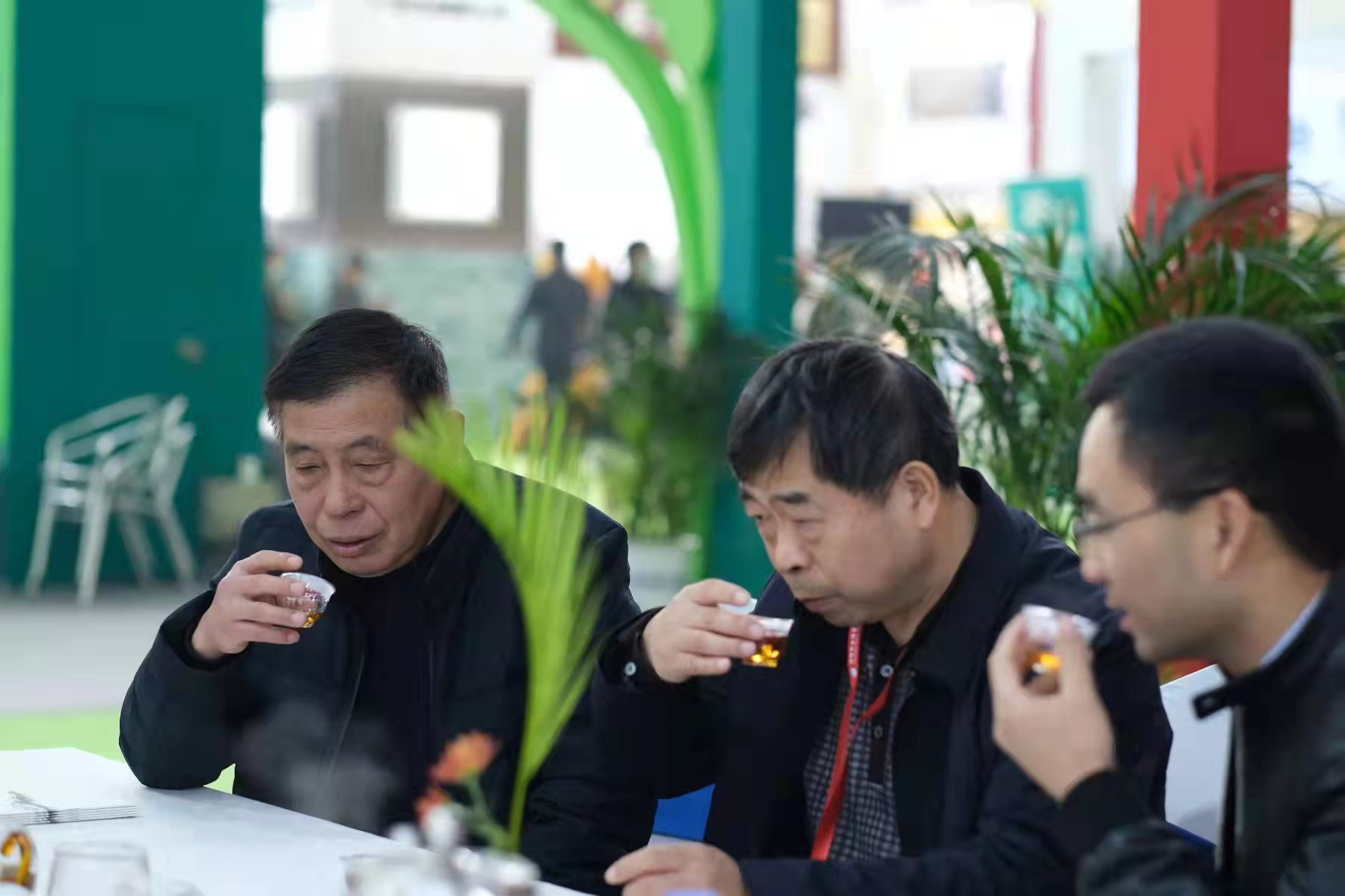 (益阳市人民政府副市长汤瑞祥与中国制茶大师刘杏益品饮湘益茯茶)