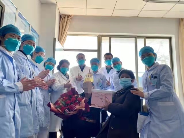 当科室医务人员得知魏爷爷的生日后,杨坤云教授和护士长周桂芝带领医护人员,利用闲暇的时间将精心准备的生日蛋糕和鲜花送到了魏爷爷的手上,一起为魏爷爷送去了温暖的祝福。