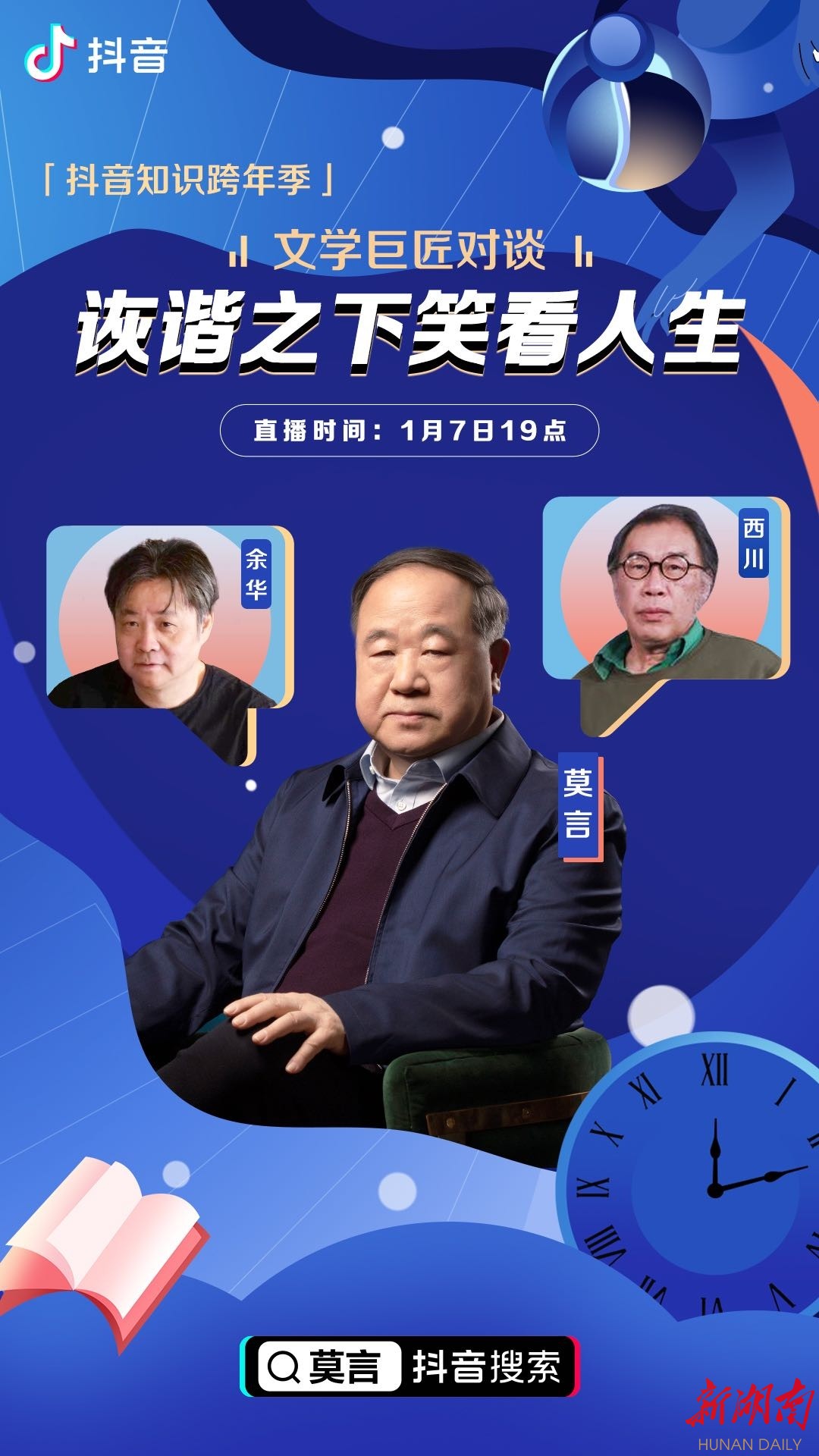 科教新报·新湖南客户端讯(记者 陈洁)短视频和直播时代,人们跨年又有了新方式。近日,抖音上线“知识跨年季”主题活动,邀请各领域知识创作者以及莫言、余华、郝景芳等十多位知识大咖,通过短视频和系列直播互动的方式,陪网友一起跨年。