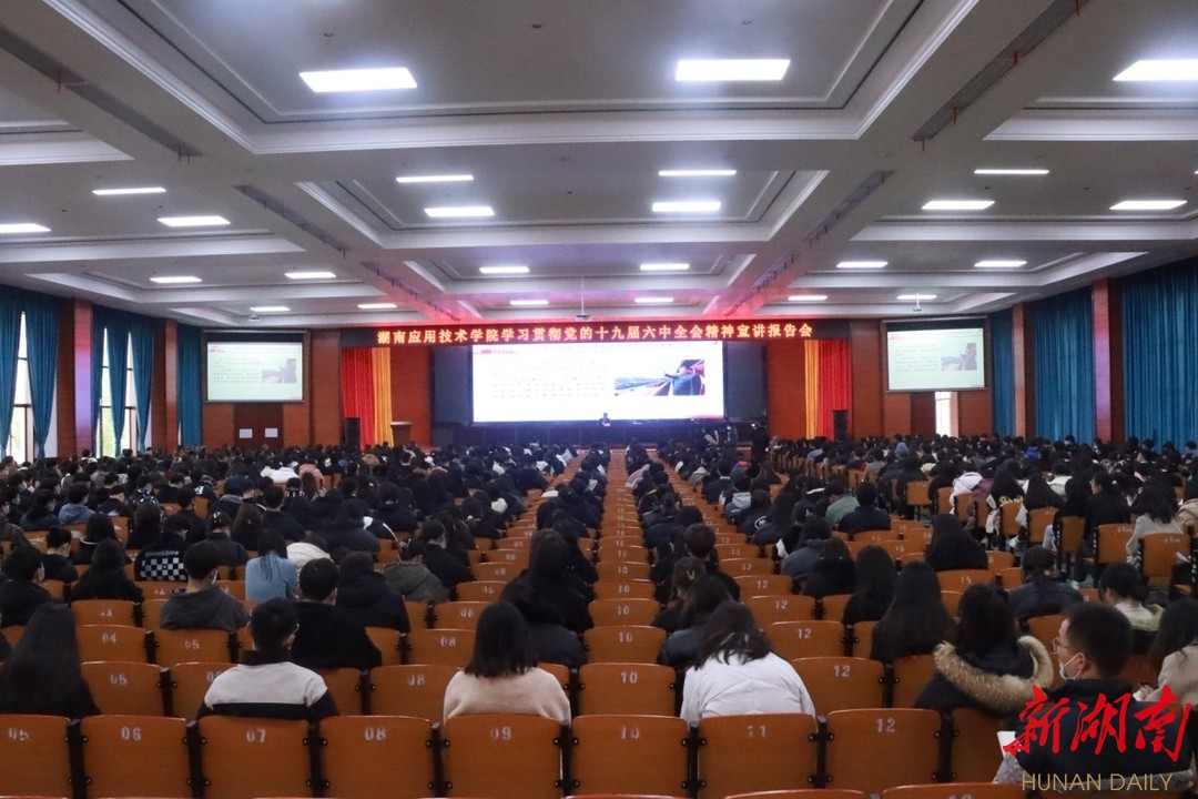 科教新报·新湖南客户端讯(通讯员 林坚)12月17日上午,常德市委常委、宣传部部长彭晛丹赴湖南应用技术学院作专题报告会,推动党的十九届六中全会精神深入基层、沁润师生心田。湖南应用技术学院全体校领导、中层以上干部、师生党员及入党积极分子代表共约800人现场聆听报告。