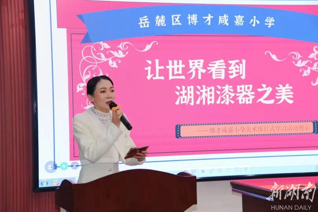 长沙市岳麓区博才咸嘉小学通过线上线下的方式,在全国各地师生们的见证下,共同迎来了长沙市刘菲菲校长工作室研讨活动暨2021年博才咸嘉小学美术项目式学习活动展示——“让世界看到湖湘漆器之美”。