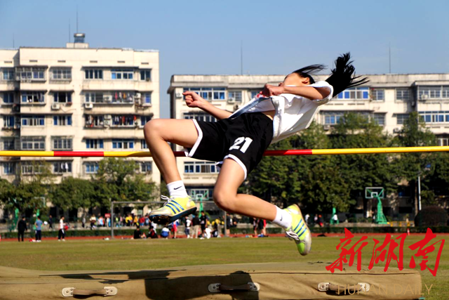 目视前方,起跑、加速、起跳、腾空、过杆、落地,一气呵成。完美的一条弧线划出了灵魂翱翔的弧度。跳高场地上屡屡传来惊叹,体育路中学的邓雅辰以1.68米的成绩轻松打破区运会纪录。据悉,他在上个月结束的株洲市“三好杯”初中男子跳高比赛中,以1.85米的成绩创造赛会纪录,他的目标是世界冠军。