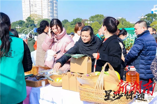 本次活动现场设置了产品展销区和品鉴区,来自全县66家授权企业的370余款“星沙味道”特色农产品尽集于此,线下现场促销,线上通过抖音直播、微信公众号、微博等新媒体向社会宣传展示及销售,全国网友足不出户就可以购买长沙县特色农产品。