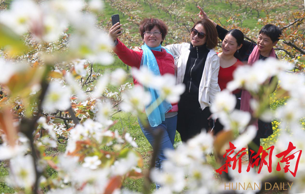 △游客在金甲梨园赏花