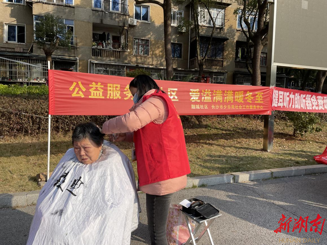 新湖南客户端12月21日讯 (通讯员 陈蒙) 为弘扬尊老爱老的传统美德,扎实开展“我为群众办实事”实践活动,方便辖区居民生活,关爱居民身体健康,12月21日上午,长沙市天心区南托街道融城社区新时代文明实践站、长沙市夕乐苑社会工作服务中心特邀请爱尔眼科、优仕口腔、健耳听力等公益机构在社区文化广场为辖区居民开展义诊、义剪活动,同时也邀请梓博锐物业工作人员进行小家电维修。