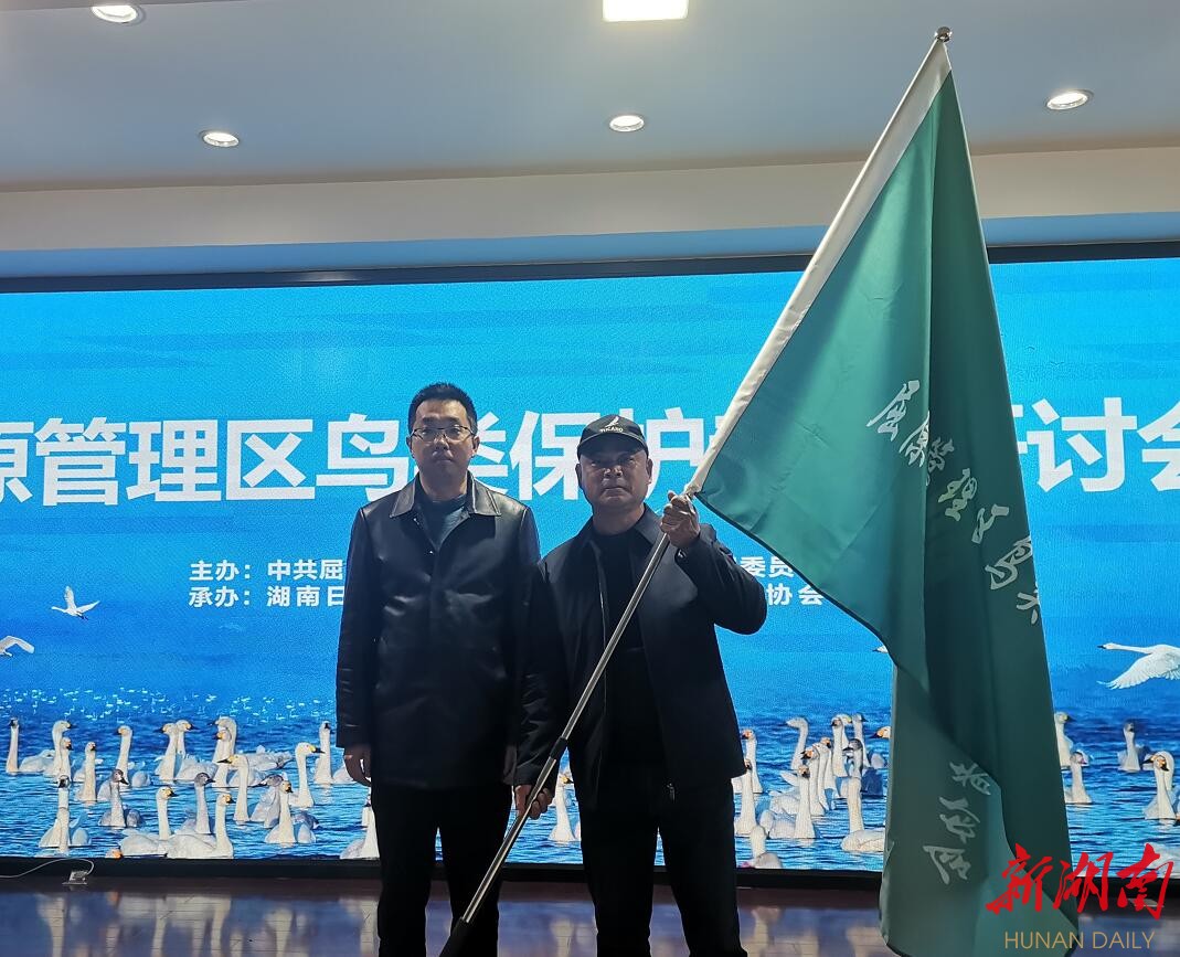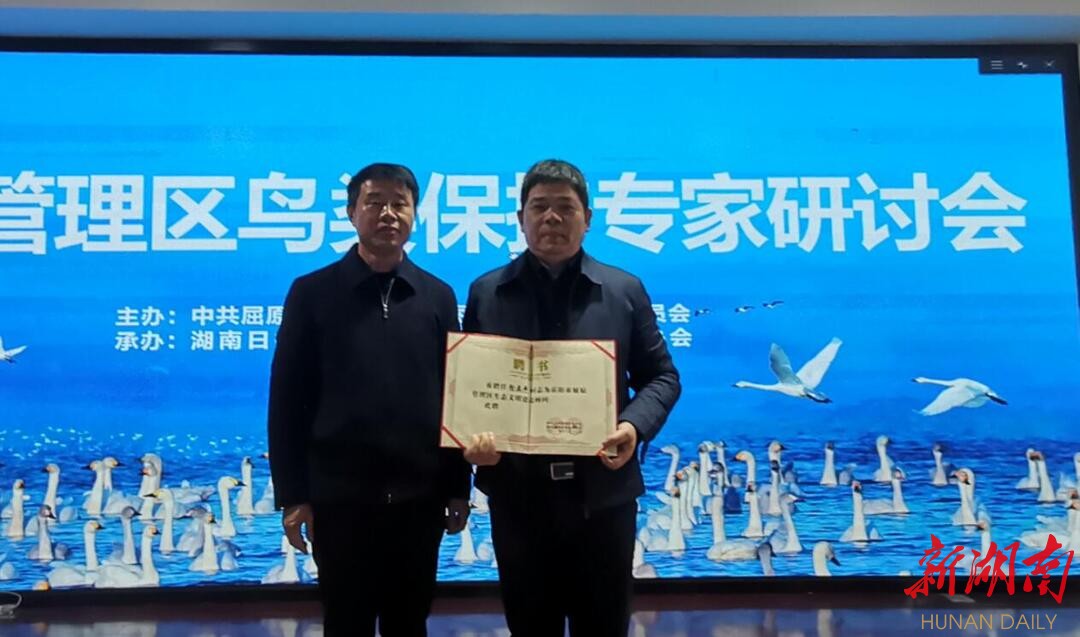 为了更好地保护候鸟及其生态环境,屈原区委、区管委会聘请徐亚平为生态文明建设顾问,现场颁发聘书。同时,成立屈原区候鸟保护志愿者协会,并聘请湖南最美志愿者、“跟着大雁去迁徙”发起人、鸟类专家周自然为协会顾问,省林业局野生动植物保护处副处长魏营为会长徐升平授旗。