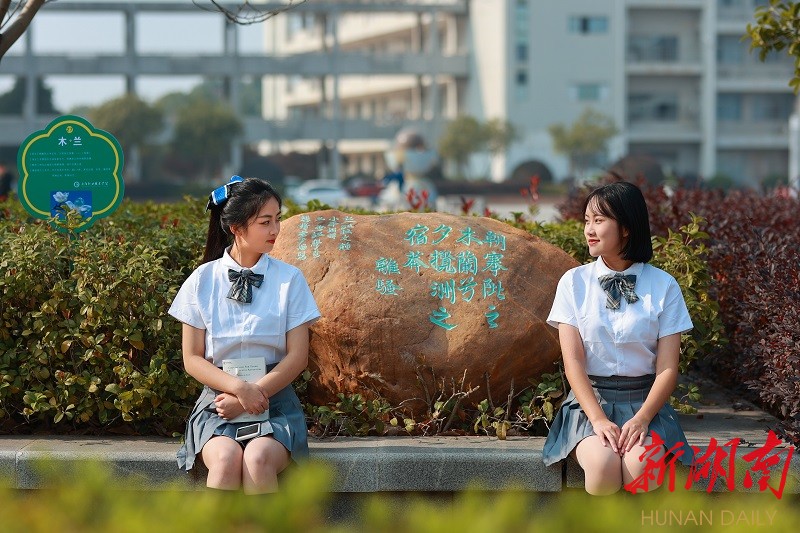 徜徉于国家级3A级景区的校园内,亭榭赏荷、春晖华艳、红园聆教等校园十八景百花齐放。潘岳生翻开手中的一本台历,只见台历页面与校园十八景一一对应。他告诉记者,去年,学院请来包括他在内的岳阳诗词界“洞庭八友”,为校园十八景作诗。