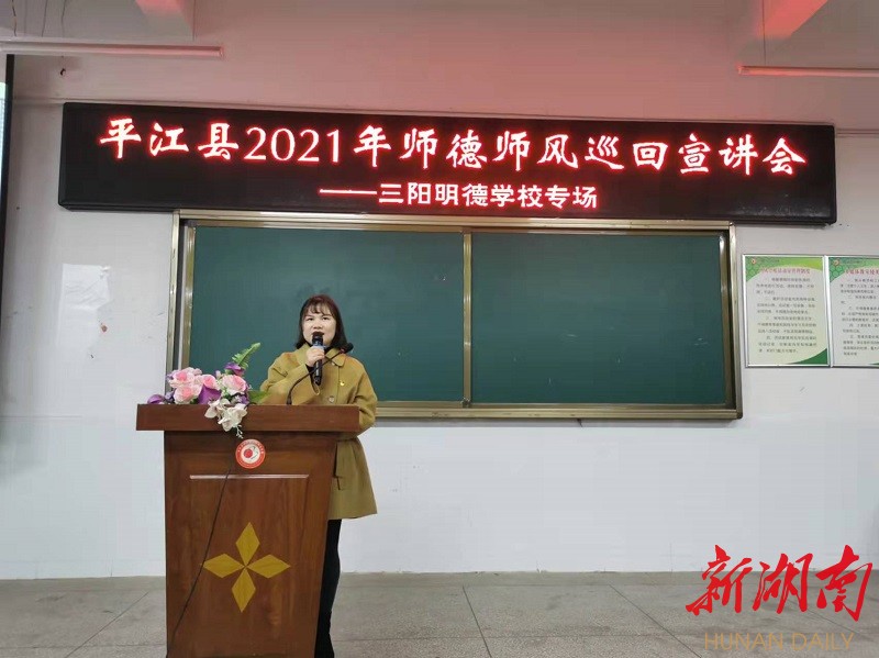 今年是湖南省“师德师风建设年”,平江县教育局遴选出16名优秀教师,在全县各乡镇和县城学校设32个专场,进行师德师风巡回宣讲,让老师们学有标杆、做有榜样。