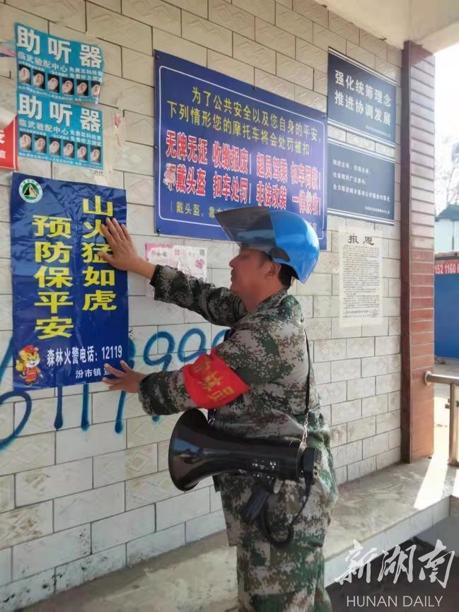 每年的清明节和立冬,湘南一带都有上坟烧纸祭祖的习俗,极易引发森林火灾。每逢这些特殊日子,贺文权就会通过写标语、树警示牌等方式宣传防火知识,对重点坟场进行蹲点防护,劝导村民不带火星入林,还与村干部一道在路口设卡,收缴进入山林香烛、鞭炮,确保不发生火灾。