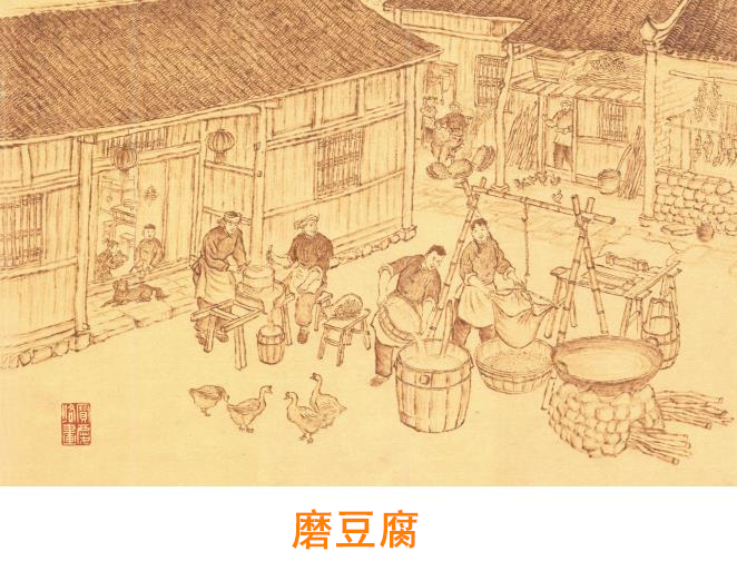 冬至是农家磨豆腐、做豆腐乳的好日子。将做好的豆腐切成小块,放置好让它发酵霉变,形成豆腐乳。老话说“冬至做的腐乳,最是醇香又更易保存”。