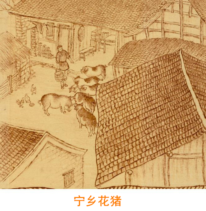 宁乡花猪、攸县麻鸭、武冈铜鹅是我省著名的特产。宁乡花猪是我国四大优良地方猪种之一。冬至前后,宁乡花猪已长得膘肥体壮。