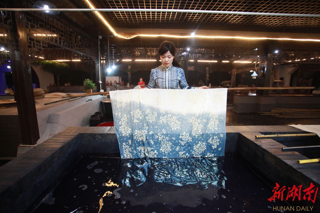 为了这片“中国蓝”,杨彩虹、罗沙沙母女放弃在发达地区的优越生活和心仪工作,毅然回到家乡。经10多年的奋力打拼,让濒临消亡的邵阳蓝印花布不但得到生产性保护,还一步步走向市场、走出国门,成为邵阳市一张耀眼的文化名片。