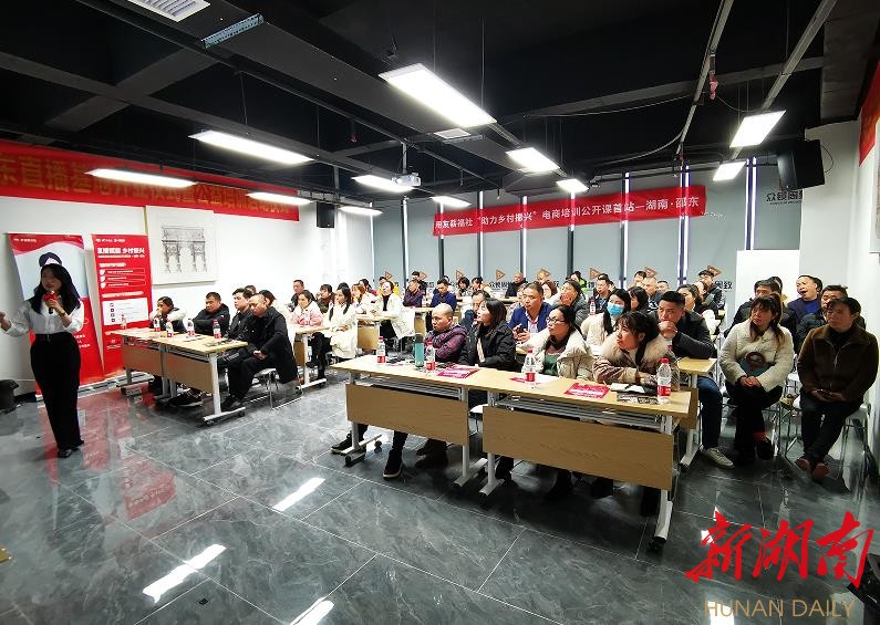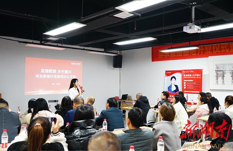 活动当天,“直播赋能 乡村振兴——用友薪福社电商培训公开课”在邵东直播基地开讲,公开课从“乡村直播带货的钱景”、“直播赚钱第一步---了解直播间必备要素”、“直播赚钱第二步---如何引爆直播间”三个部分,帮助企业和农户学到直播带货要点,为今后的乡村振兴赋能。