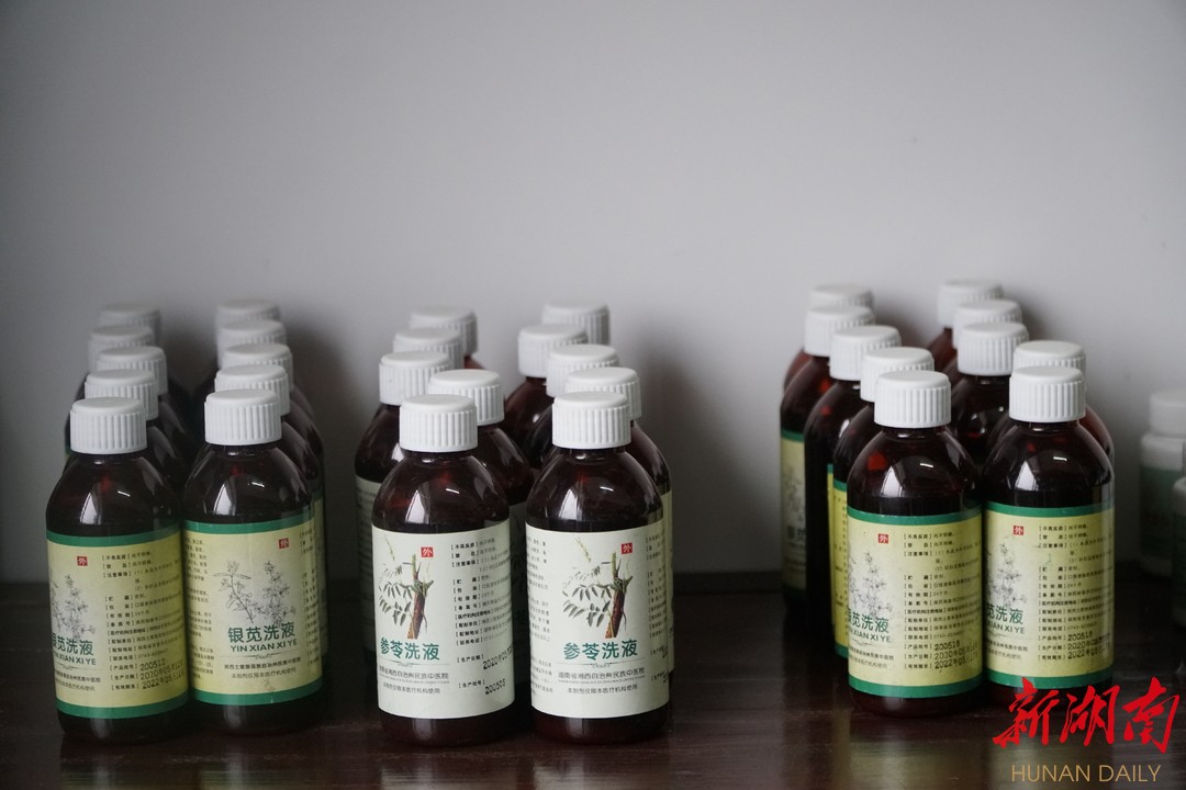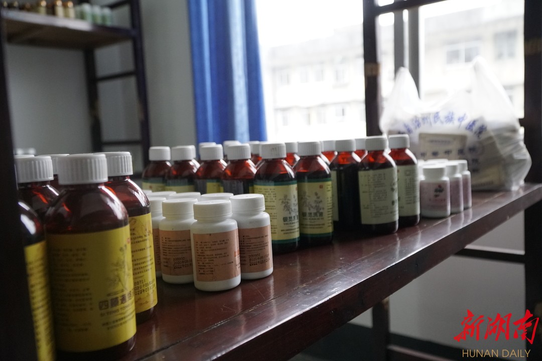 罗远强在查看药剂(图片、视频均由湖南日报·新湖南客户端记者 向莉君 拍摄制作)
