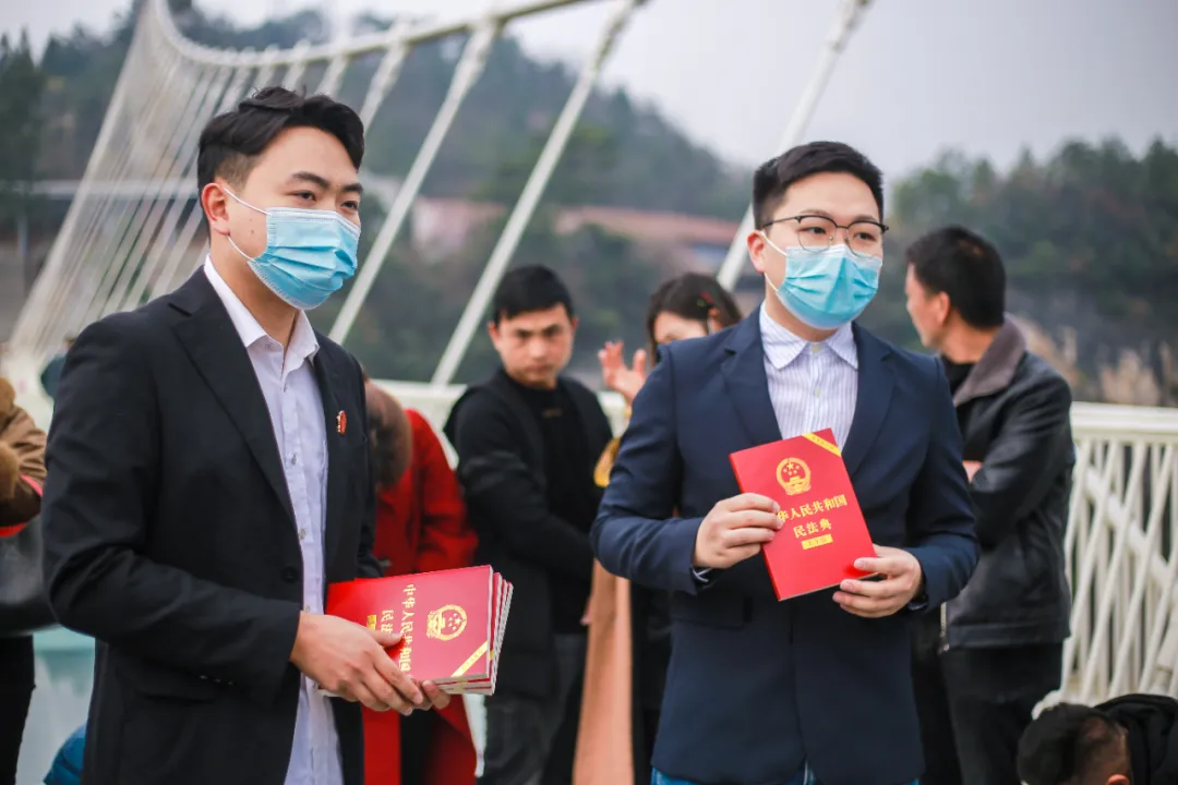 2月24日,慈利县法院邀请全国人大代表向伟艺,一同深入张家界大峡谷景区宣讲民法典。图:唐丽君