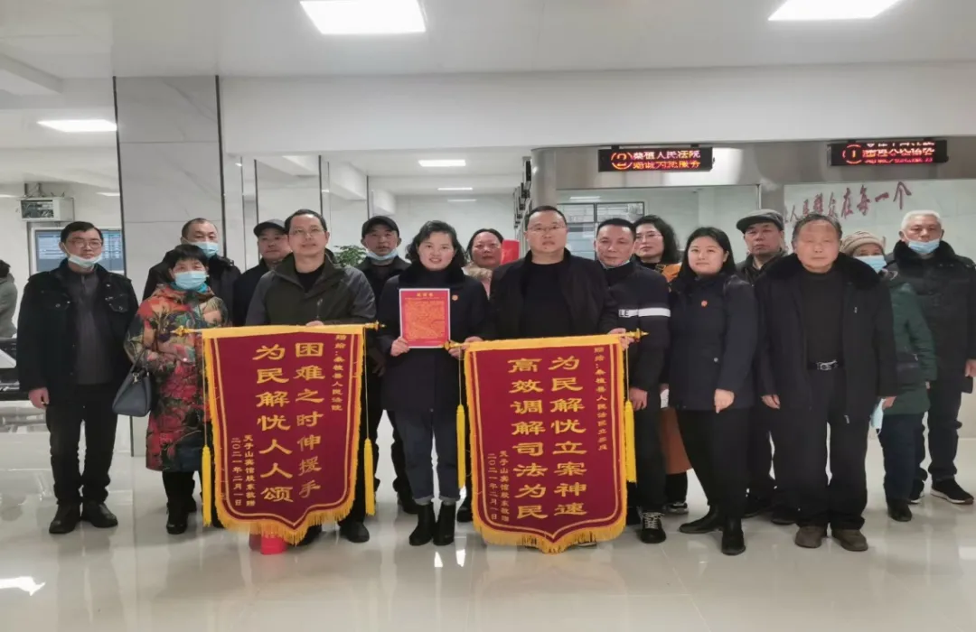 2月1日,天子山宾馆股东代表们给桑植县法院送去感谢锦旗,表达谢意。图:黄瑶