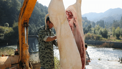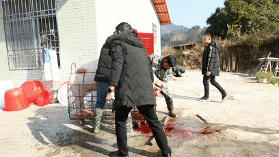 将腌渍好的猪肉码放整齐放置三天左右,再取出来清水冲洗晾晒两天,就可以上架烘烤了,一般要小火慢烘至少20天才行。按照以往的经验,冬至这一天杀猪烘制的腊肉品质是最好的,市场上也最受欢迎。另一边,李文庆的妻子在准备杀猪菜,除了现杀的新鲜猪肉,还有自家养殖的特色山螺,杀年猪是一个重要的仪式,会邀请亲朋好友过来吃一顿丰盛的杀猪宴,庆祝一年的好收成。