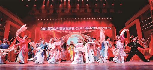 祁剧,因发祥于永州祁阳而得名,是湖南省四大地方剧种之一。在中国戏曲大观园里,祁剧比京剧、越剧、黄梅戏等著名剧种发祥都早,至今已500余年。祁剧由声腔、曲牌、锣鼓经、器乐演奏组成,形成了内容丰富、完整而独特的音乐体系。祁剧流传广泛,曾有“祁阳弟子遍天下”的美誉,并与当地艺术相结合,形成多个剧种。2008年6月,祁剧被国务院列为第二批国家级非物质文化遗产保护名录。
