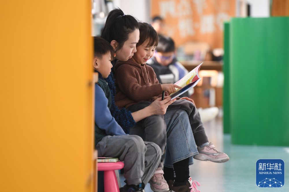 1月2日,家长和小朋友在合肥市图书馆悦书房看书。新华社记者 张端 摄