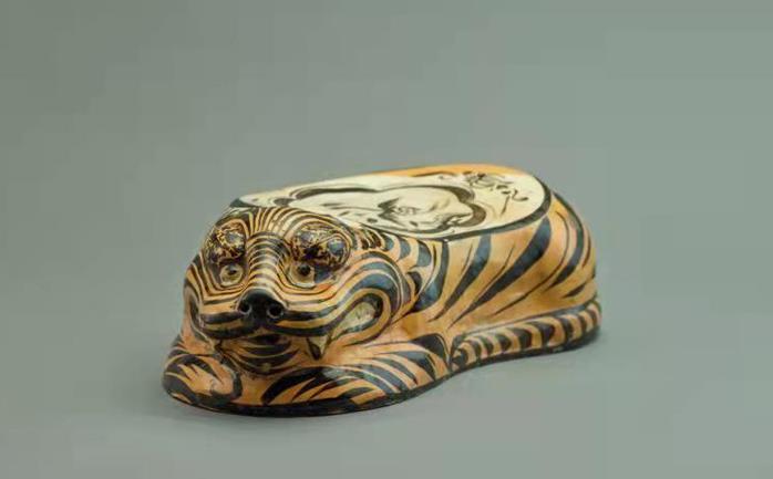 上海博物馆收藏的中国金代磁州窑“黄地黑彩”虎形瓷枕今年也是大出风头。恰逢虎年,又因其有着吉祥、辟邪的寓意,关于它的文创周边层出不穷。