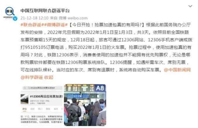12306曾回应:抢票加速包并不能拥有优先购票权