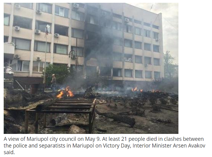 《基辅邮报》(Kyiv Post)5月9日报道:马里乌波尔市议会被烧毁后的场景,已成废墟。